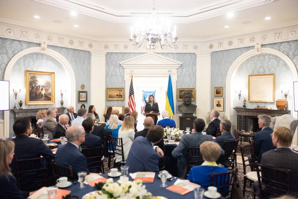 У Далласі перша леді України Олена Зеленська зустрілася з представниками ділових і філантропічних кіл Техасу. Захід модерував виконавчий директор Інституту Джорджа Буша Девід Кремер.
